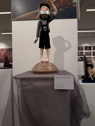 Художественную часть экспозиции составили необыкновенные авторские куклы от 23 художников, выполненные в различных техниках и из разных материалов — фарфора, папье-маше, текстиля, войлока и пластика. Среди работ — образ космонавта в открытом пространстве, персонажи мультфильма «Тайна третьей планеты», а также кукла, посвященная актрисе Юлии Пересильд, ставшей шестой женщиной в истории СССР и России, побывавшей в космосе. Все экспонаты уникальны и существуют в единственном экземпляре.